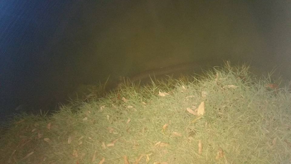 A foto mostra o peixe elétrico bem próximo ao aterro no gramado do principal cartão postal da cidade. Os boatos são de que algumas pessoas usam daquele local para nadar.