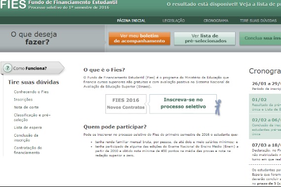 O Ministério da Educação prorrogou para hoje (23) o prazo para a pré-seleção dos candidatos participantes da lista de espera do Fundo de Financiamento Estudantil (Fies) e do Programa de Financiamento Estudantil (P-Fies). O prazo anterior era 25 de abril, mas a Secretaria de Educação Superior (Sesu) alterou a data para que todos os estudantes pré-selecionados possam complementar a sua inscrição.