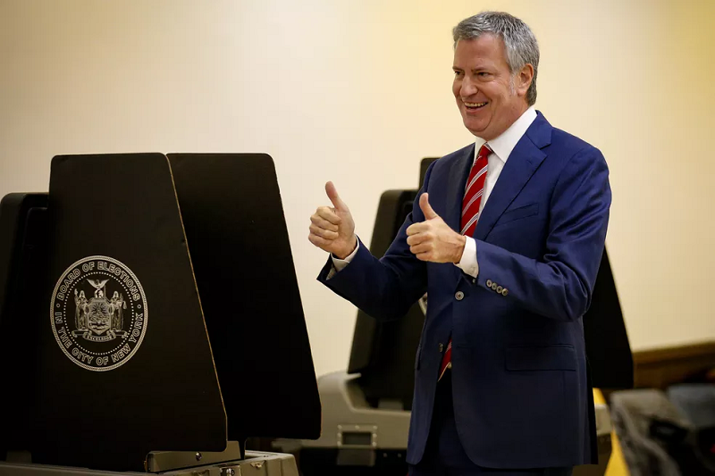 O prefeito de Nova York, Bill de Blasio, vota na eleição municipal — Foto: Brendan McDermid/Reuters