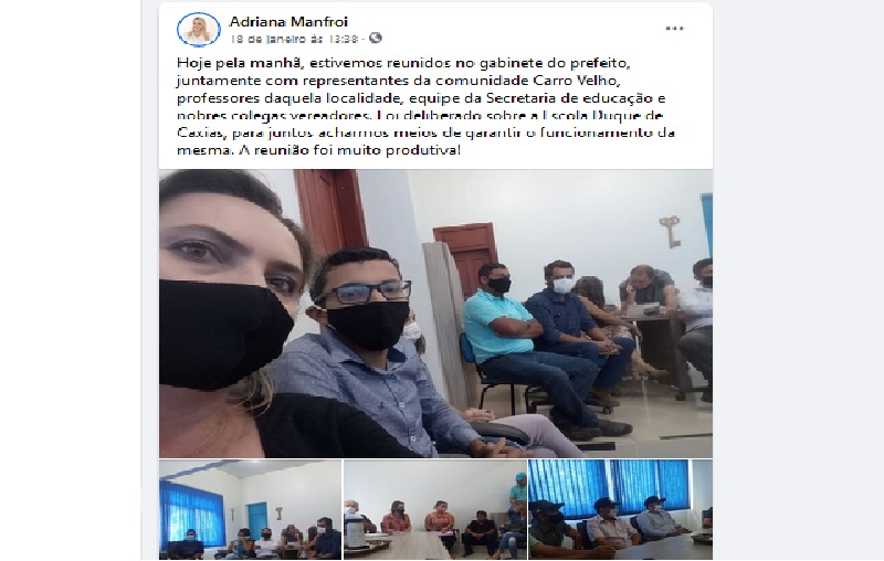 A reunião na prefeitura sobre o fechamento da escola Duque de Caxias foi divulgado na pagina pessoal no facebook da vereadora Adriana Manfroi (Patriota)-Foto Reprodução