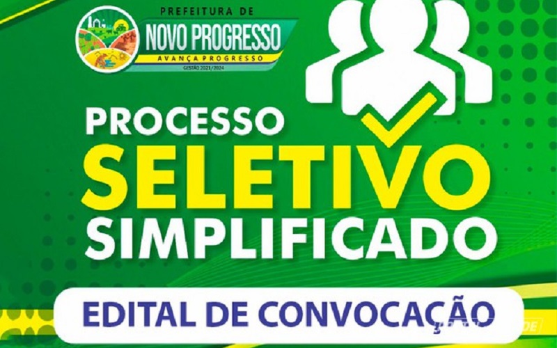 A Prefeitura Municipal de Novo Progresso torna público a convocação dos classificados no Processo Seletivo Simplificado 001/2021, do Edital disponível para consulta no mural da Prefeitura Municipal de Novo Progresso, no endereço eletrônico da Instituição que realizou o processo FADESP e no site da Prefeitura Municipal.