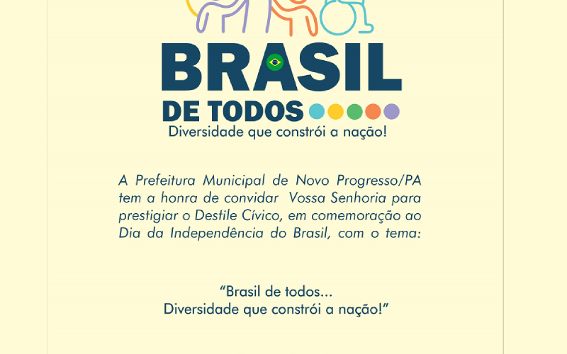 Foto: Reprodução | A Prefeitura Municipal de Novo Progresso/PA convida toda a população para prestigiar o tradicional Desfile Cívico em comemoração ao Dia da Independência do Brasil, que este ano traz como tema: