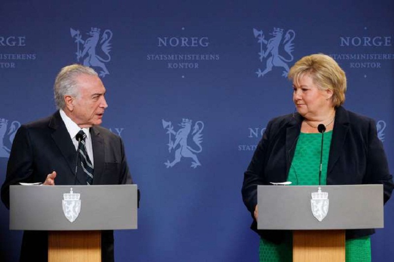“Estamos preocupados com a Lava Jato. É preciso fazer uma limpeza e encontrar uma solução”, afirmou Solberg a jornalistas, ao lado de Temer. Segundo ela, o Brasil vive uma época de “desafios” e “turbulência”. Atualmente, a Noruega também investiga empresas que teriam pagado propina a ex-diretores da Petrobras e executivos que manteriam contas no exterior.