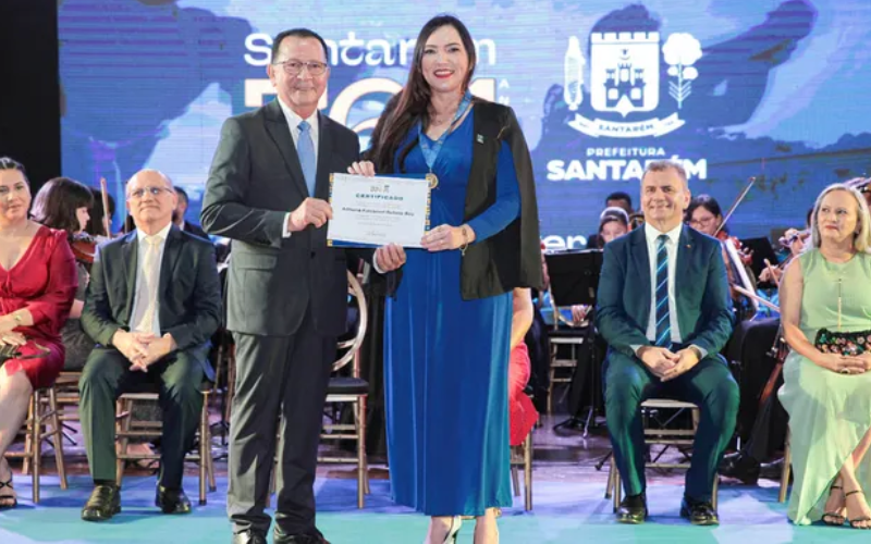 Adriana Falconeri recebe Medalha Padre João Felipe Bettendorf durante celebrações pelos 364 anos da cidade.