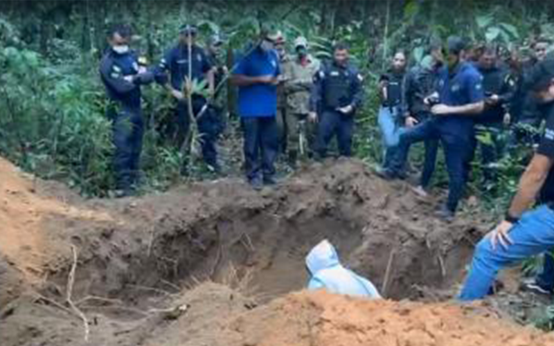Com base nas informações fornecidas pelo preso, os investigadores se dirigiram a uma área de mata e encontraram os restos mortais de 14 pessoas na manhã desta sexta-feira (10). Inicialmente, foram contabilizados 11 corpos, mas o número subiu ao longo do dia. As vítimas ainda não foram identificadas.