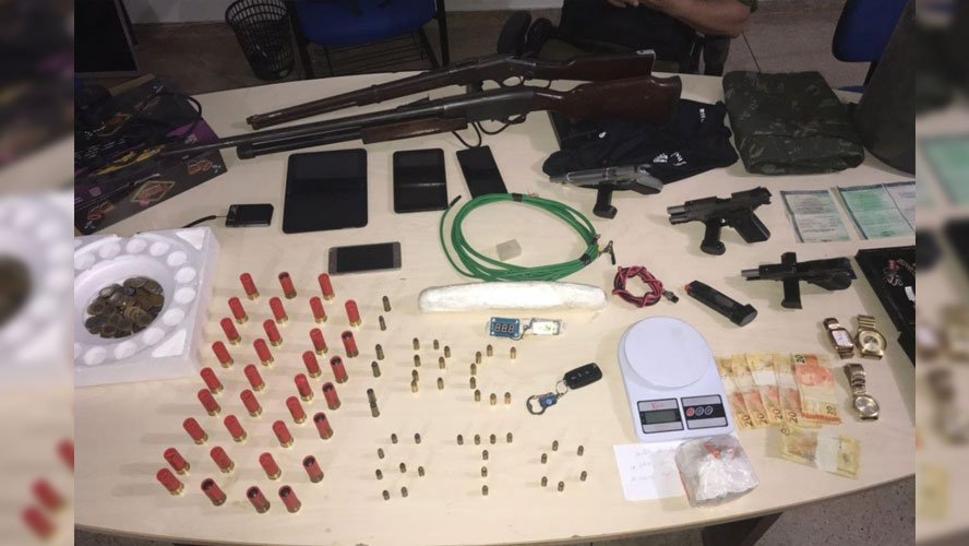 Ele também informou aos policiais o paradeiro de Israel Araújo de Oliveira, que foi preso em flagrante, pelo crime de posse ilegal de armas de fogo e munições de uso restrito. Em sua residência foram apreendidas duas espingardas, sendo uma de calibre ponto12, e outra de calibre ponto 44, além de diversas munições dos mesmos calibre.