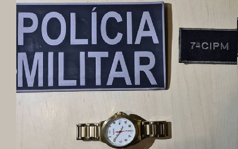 Nesta terça-feira, 2 de novembro de 2021, por volta das 02h: 00, na rua dos Lírios, bairro Tom da Alegria-3, ambos supracitados foram abordados e no momento da busca pessoal, foi encontrado, no bolso de Fábio, um relógio de marca Magnum, cor dourada, com o mesmo número de série (MA31355) de um dos relógios furtados.