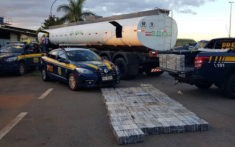 (Foto:Reprodução) – A Polícia Rodoviária Federal (PRF) apreendeu na tarde deste domingo (12/01/2020) cerca de 1,1 tonelada de cocaína dentro do tanque de uma carreta de óleo vegetal na BR-050, em Cristalina (GO). A carga foi avaliada em R$ 46 milhões. Esta foi a maior apreensão da substância entorpecente realizada pela PRF na região do Distrito Federal e Entorno.