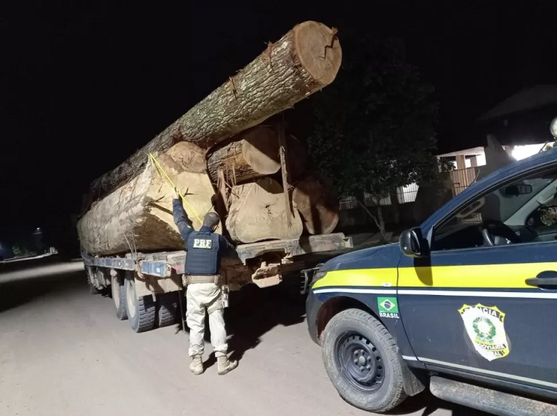 PRF apreende 32,9m³ de madeira transportada ilegalmente, em Placas