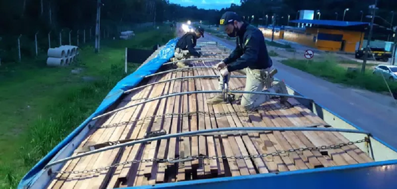 PRF apreende 33,94m³ de madeira da espécie maçaranduba na BR-163, em Santarém