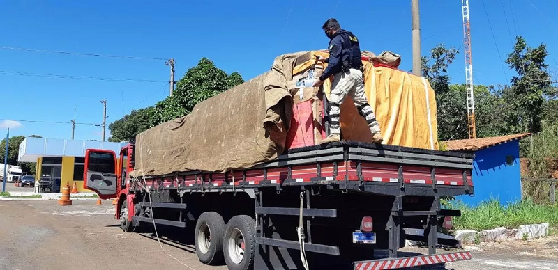 A equipe então fez a abordagem e passou a fiscalizar o veículo e a carga. No momento, o motoristas apresentou uma documentação dizendo que estaria transportando madeira e portas com origem no Paraná e destino Belém (PA).
