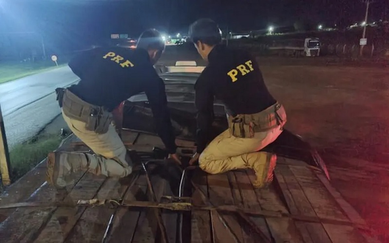 A Polícia Rodoviária Federal (PRF) apreendeu uma carga com 35,69 m³ de madeira que era transportada de forma ilegal na BR-163, em Diamantino, a 209 km de Cuiabá, nesta terça-feira (25).
