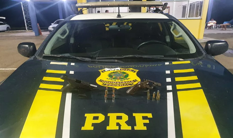 Depois, agentes abordaram um carro SUV de alto padrão e encontraram uma pistola calibre 40 carregada com seis munições embaixo do banco do passageiro e um revólver com cinco munições que estavam no chão nas mediações do acostamento, próximo ao veículo..