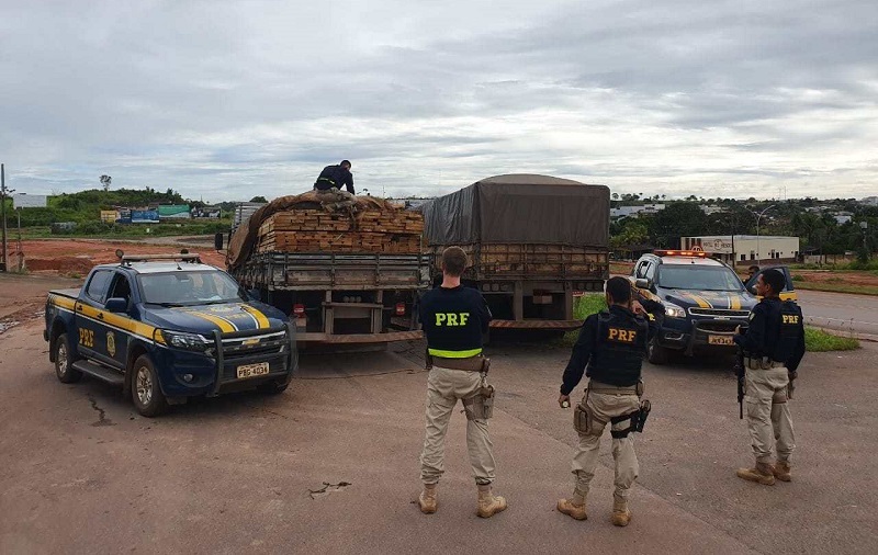 PRF apreende no MT dois caminhões carregando madeira de forma ilegal que saiu do PA
