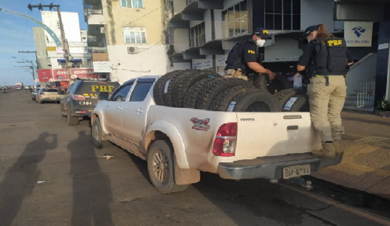 A Polícia Rodoviária Federal (PRF) apreendeu 20 unidades de pneus de fabricação estrangeira e 100 unidades de peças para motocicletas sendo transportados sem documentação fiscal, na tarde desta segunda-feira (10), no Km 995 da rodovia BR-163, em Santarém, no oeste do Pará.