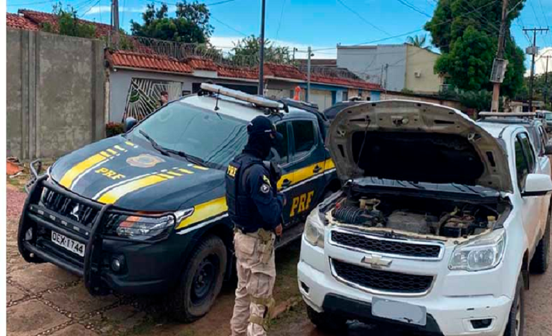 Ao abordar um veículo Chevrolet S10 branca, de placa aparente OYY-1637, e que estava estacionado às margens da BR, a equipe identificou que o veículo era fraudado na modalidade “clone”, ou seja, os dados aparentes não condizem com o verdadeiro veículo. Foi constatado vestígios de ação de instrumento abrasivo e posterior remarcação nos elementos de identificação.