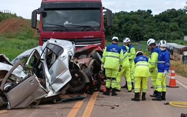 Dois carros, incluindo o Pálio com as vítimas, ficaram prensados entre duas carretas e totalmente destruídos. Já a caminhonete teve danos na lateral e parou às margens da rodovia.