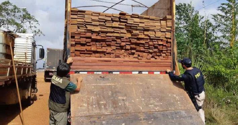 Na manhã desta quinta-feira (05), a Polícia Rodoviária Federal (PRF) em parceria com o Instituto Brasileiro do Meio Ambiente e dos Recursos Naturais Renováveis (Ibama), flagraram um caminhoneiro transportando madeira de forma ilegal pela rodovia BR-230, a Transamazônica, do município de Altamira, Região do Xingu.