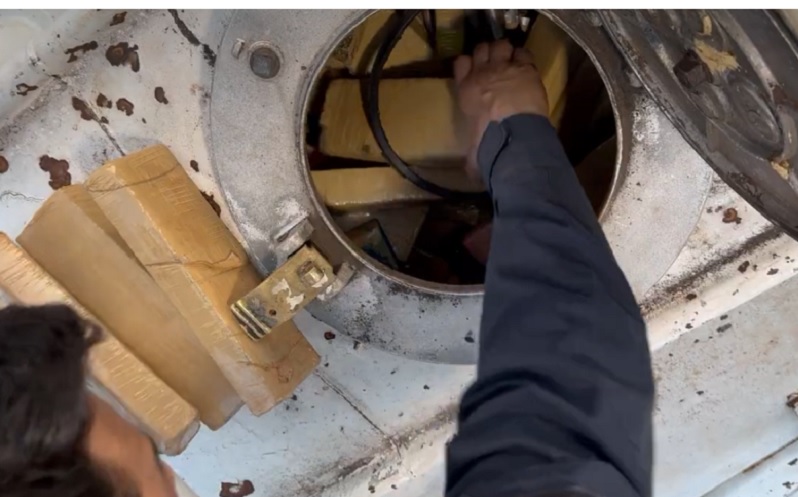 As imagens feitas pelos agentes mostram o veículo completamente cheio com o entorpecente, que estava no lugar do combustível para não levantar suspeitas em fiscalizações, segundo os policiais.