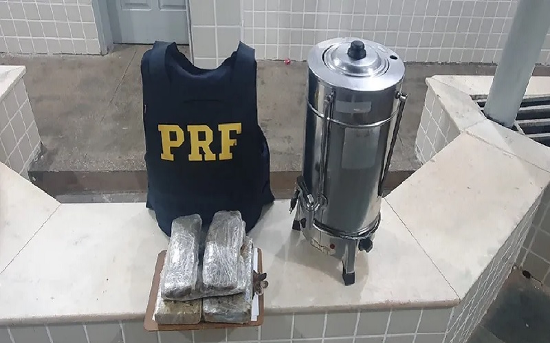 De acordo com a PRF, a equipe iniciou a vistoria no compartimento de encomendas do ônibus, quando notou que o peso da cafeteira não correspondia às características do equipamento. Com a suspeita, os agentes aprofundaram a fiscalização e identificaram um odor característico de maconha.