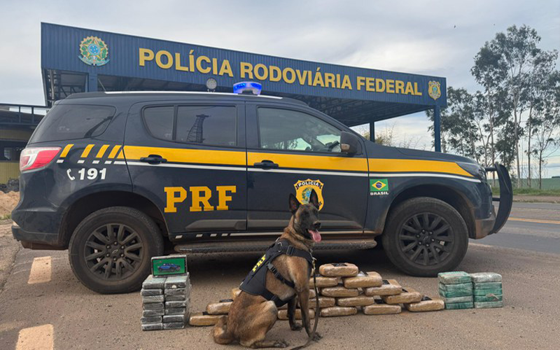 Foto: Reprodução | No dia 14 de janeiro de 2024, por volta das 16h, a Polícia Rodoviária Federal (PRF) realizava fiscalização na BR-364, no município de Alto Garças/MT, quando abordou um caminhão Durante a ação, o cão farejador K9 Zion foi utilizado e sinalizou a presença de entorpecentes na cabine do veículo.