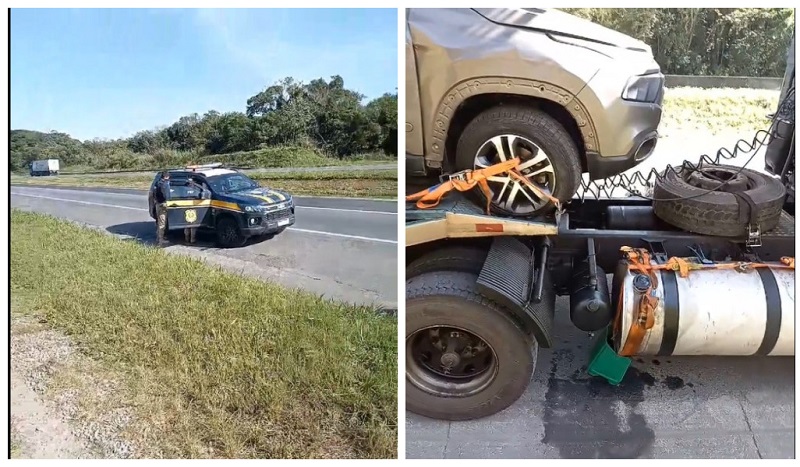 Nesse meio tempo a PRF parou a carreta e apreendeu os veículos. O que mais indignou o caminhoneiro é que os agentes rodoviários não deram a oportunidade para regularizar a situação da carreta já que um furo de pneu, que pode acontecer com qualquer um, ocasionou o problema.