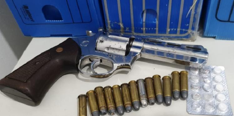 Os policiais perguntaram se ele possuía algo ilícito no interior do veículo, que por sua vez respondeu que havia um revólver, munições e algumas anfetaminas, fato confirmado pela equipe após busca no interior do caminhão. Foi encontrado um revólver marca Rossi, calibre 38, municiado com cinco munições, oito munições sobressalentes e cinco comprimidos de anfetamina “nobésio forte” popularmente conhecido como “rebite”.