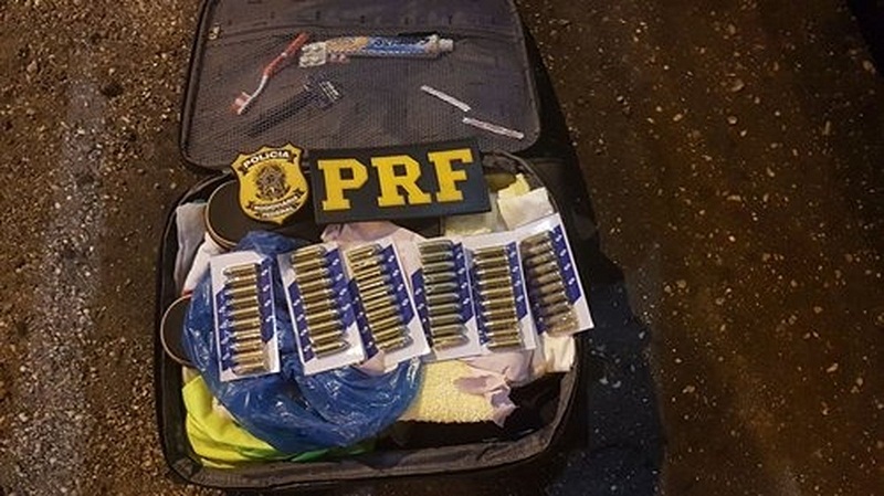 PRF prende suspeito que viajava com cerca 60 munições dentro da mala na BR-010
