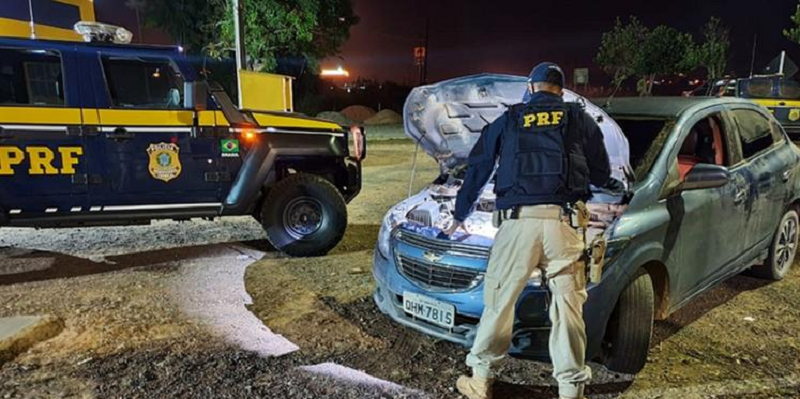 O carro era um Chevrolet Onix azul. Estava com placa QHM-7815 (Joinville – SC). O único documento apresentado pela motorista era um licenciamento de 2015. Disse que a documentação completa estava com um primo e ela ainda não pegado. Os policiais então começaram a fazer a inspeção completa do carro. Foi quando identificaram sinais de adulteração de chassi e motor.