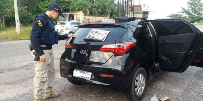 A equipe da PRF seguiu no encalço dos suspeitos, que correram mata adentro e ganharam uma certa distância, conseguindo despistar os agentes e se esconder. Ao irem até o veículo abandonado, foi constatado pela PRF que o carro estava com registro de roubo/furto nos sistemas da Polícia Civil, além de estar com uma placa falsa.