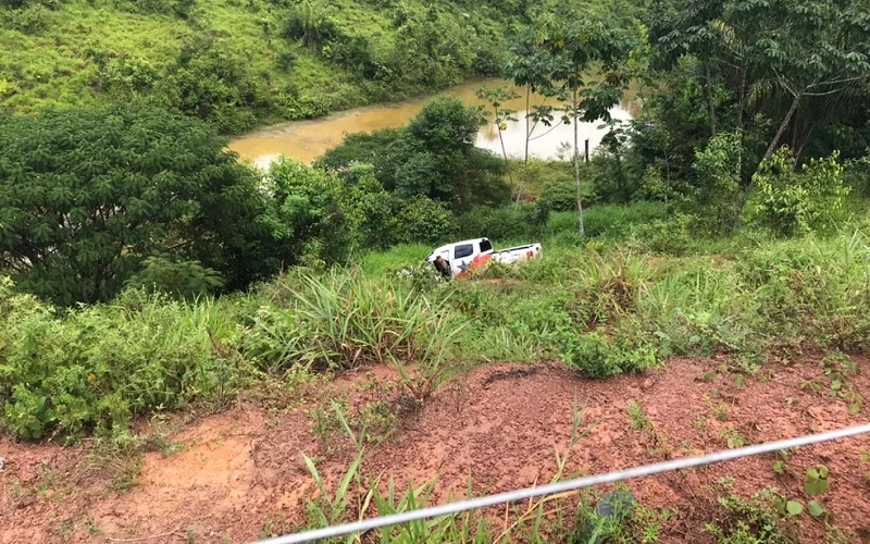 Veículo com servidores da Sespa derrapou e caiu em ribanceira — Foto: Reprodução/Redes sociais