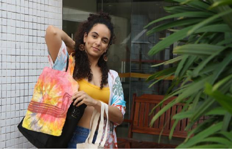 Usuária das sacolas de pano, também conhecida como ecobags, desde a escola ela já entendia a importância de manter hábitos mais sustentáveis e se acostumou cedo a evitar os plásticos.
