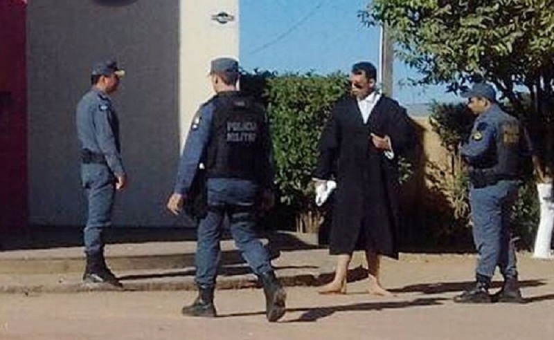 Promotor estava usando toga em frente a emissora de TV em Guarantã do Norte (Foto: Reprodução)