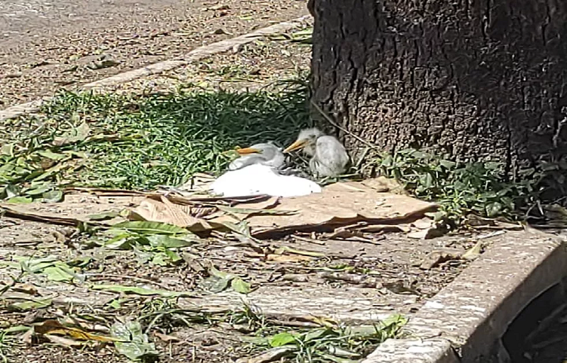 Filhotes de garça após podagem de árvores em Santarém — Foto: Redes Sociais/Reprodução