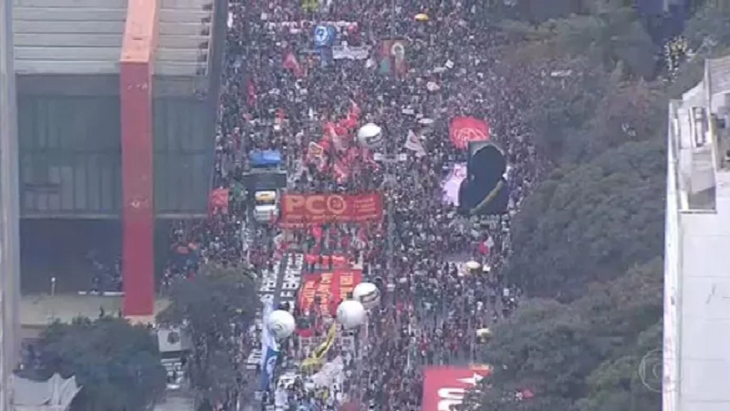 O jornal inglês “The Guardian” também publicou um texto sobre as manifestações: “Grandes multidões de manifestantes voltaram às ruas das maiores cidades do Brasil para exigir a remoção do presidente que eles culpam por mais de meio milhão de morte”.