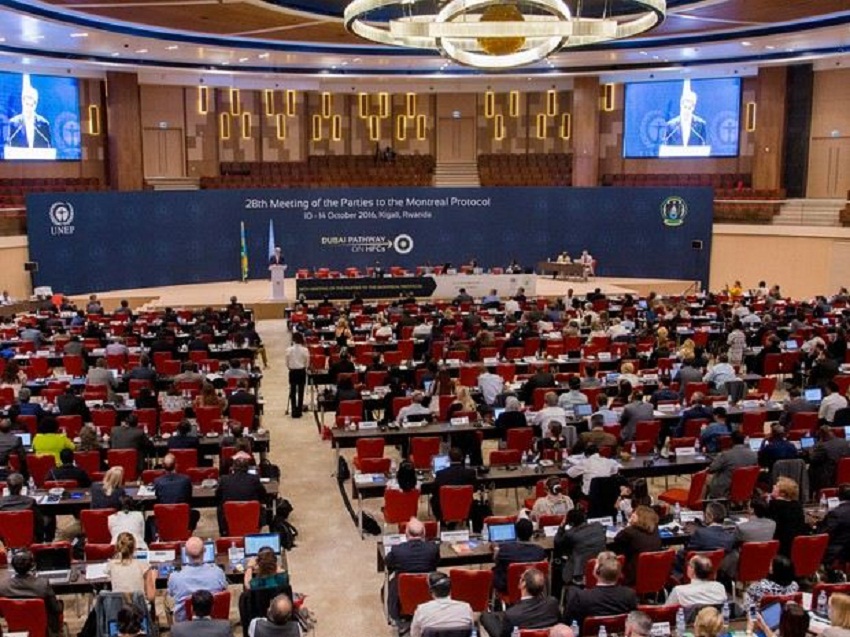 (Foto: AP)- Após uma noite de negociações, quase 200 países assinaram neste sábado (15), em Kigali, capital de Ruanda, um acordo que visa à eliminação progressiva dos hidrofluorocarbonos (HFC), um dos gases do efeito estufa considerados muito nocivos para o clima.