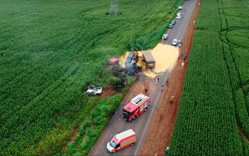 O tenente-coronel do Corpo de Bombeiros, Fernando Duarte Santana, informou ao g1 que a carreta pegou fogo após a batida, mas o motorista saiu ileso. As quatro pessoas mortas estavam na caminhonete.