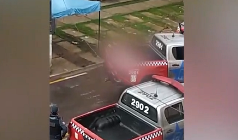 Em um vídeo que circula nas redes sociais, os policiais carregam o corpo de um homem em uma manta e arremessam na caçamba do carro – veja acima. A polícia não se manifestou sobre as imagens.