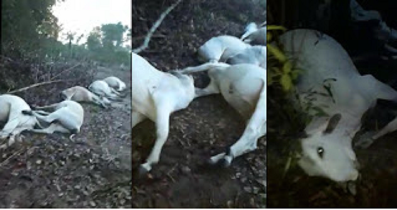 Em vídeo, é possível ver os animais mortos dispersos pelo pequeno curral que, segundo informações, o proprietário dos animais teria alugado. Prejuízo não foi estimado.
