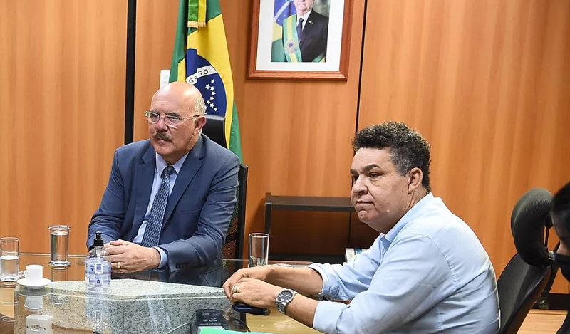 O ministro da Educação, Milton Ribeiro, com o pastor Arilton Moura em 30/11/2021 — Foto: Luis Fortes/MEC