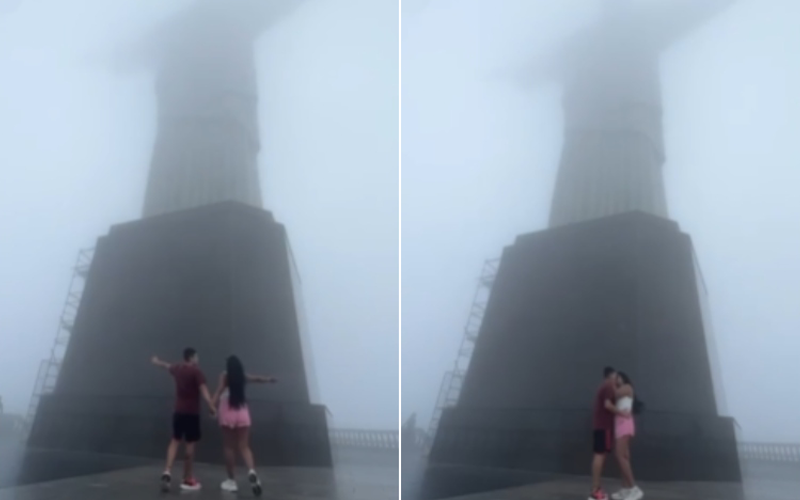 Raio atinge Cristo Redentor enquanto casal se beija: veja o vídeo!