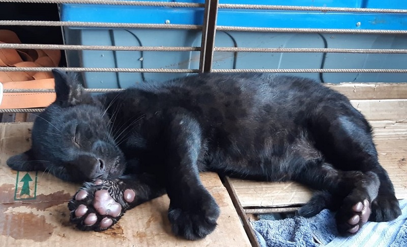 Um filhote de onça-pintada melânica foi resgatado, na quinta-feira (13), no município de Paranaíta, a 849 km de Cuiabá. De acordo com a equipe da Secretaria Estadual de Meio Ambiente (Sema), que fez o resgate, o animal de cerca de três meses é macho, estava sem a mãe e muito debilitado.