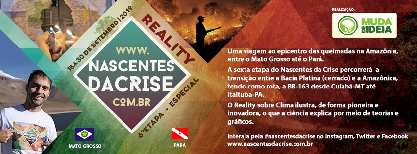 O Reality Nascentes da Crise chega à sexta etapa com as experiências do jornalista e ambientalista Diego Gazola. Dessa vez Diego vai percorrer o epicentro das polêmicas queimadas na Amazônia, desde o Mato Grosso até o Pará. O projeto interage em tempo real pela Internet com o público e o resultado se transforma posteriormente em videos documentários da série.