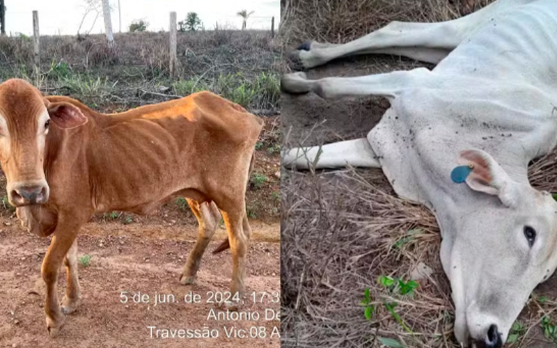 Roraima registrou a morte de 6.734 bois por falta de pastagem em propriedades atingidas pela estiagem e o governo decretou situação de emergência nesta quinta-feira (20) em Boa Vista. A estimativa é que ao menos 48 mil hectares de pasto tenham sido perdidos no estado.