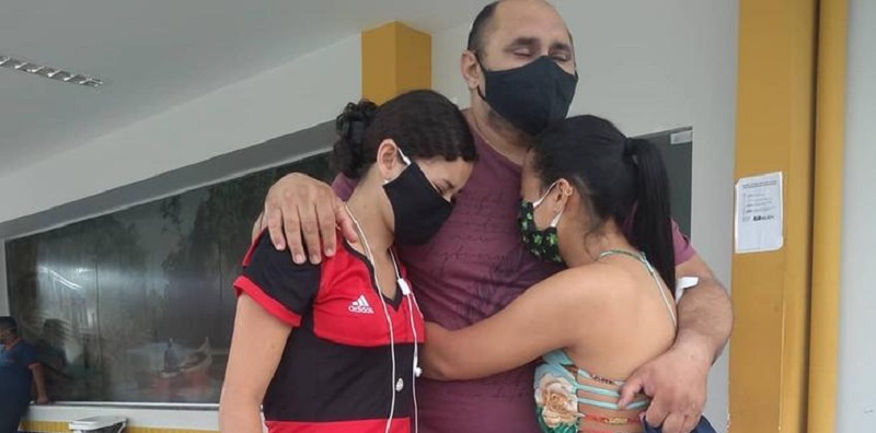 Jackson Braga (à direita) comemorou a alta do hospital Dom Vicente Zico, após ser internado com covid-19. Ele e a família desejam força e esperança aos demais pacientes e familiares. (Comus / Prefeitura de Belém)