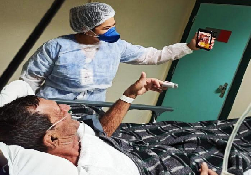 Entre os projetos a unidade realiza videochamadas entre pacientes internados por Covid-19 e familiares