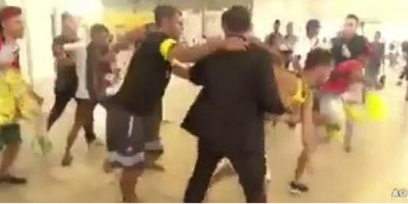 Cerca de 40 pessoas saíram correndo de um vagão para agredir um jovem, identificado como Daniel, de 19 anos, que se aproximou da equipe de reportagem para se proteger, e acabou sobrando para o repórter. O motivo do tumulto não ficou claro.