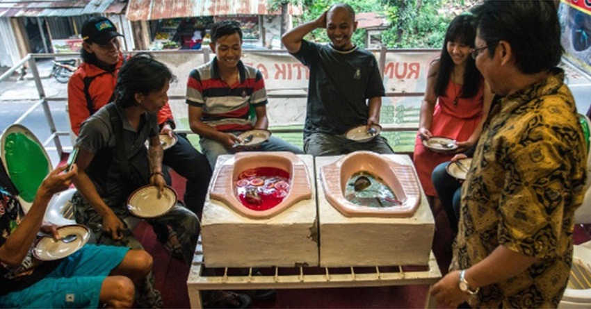 Um restaurante da cidade indonésia de Semarang chamou atenção no local em que as comidas são servidas: em pratos com formatos de vasos sanitários. As informações são do UOL.
