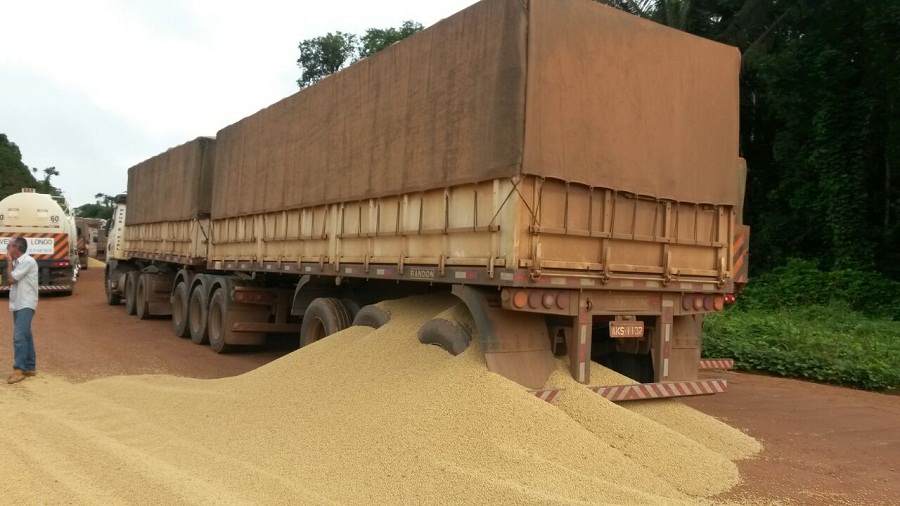 Revolta – Motorista descarrega soja na rodovia BR-163