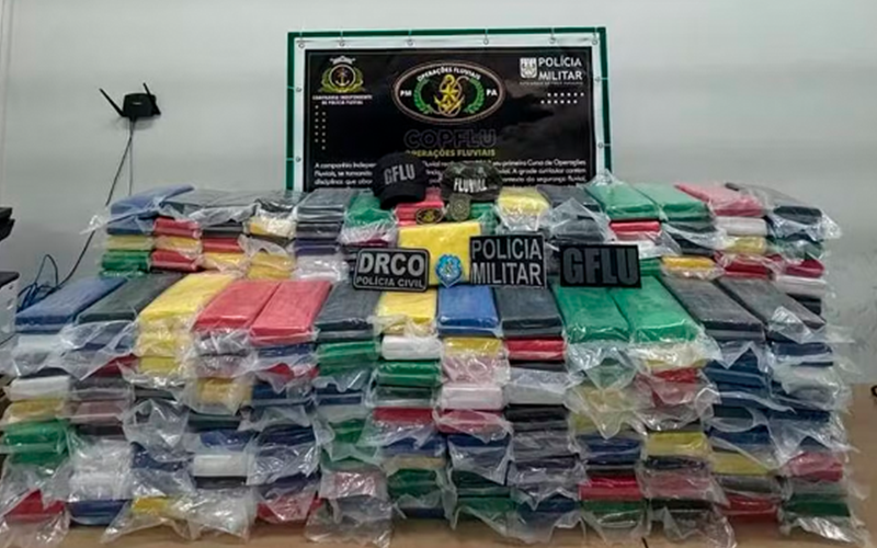 Cerca de 300 kg de entorpecentes embalados em tabletes foram apreendidos no Pará nesta terça-feira (6). A carga era transportada em uma embarcação fiscalizada pela equipe de policiamento fluvial da Polícia Militar no rio de Guajará-Açu, próximo à Vila de Beja, em Abaetetuba, nordeste do estado. A polícia tomou conhecimento do crime após denúncia anônima feita por ribeirinhos.